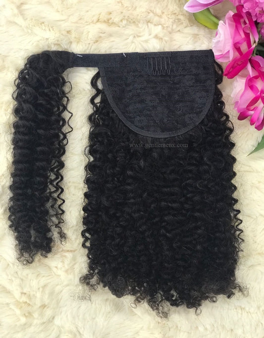 TGX Arnomeda 16''-18'' 100% Remy Human Hair Ponytail Extensions 140g Jerry Curls 1B Natural