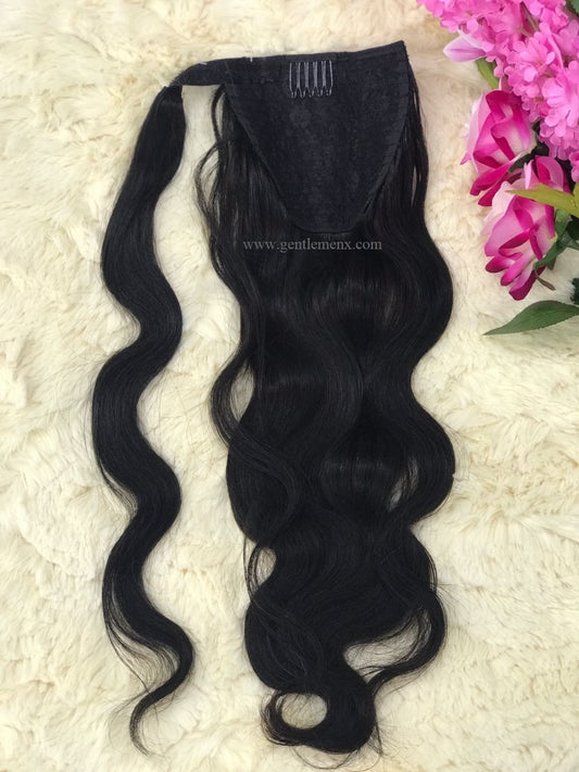 TGX Arnomeda 16''-18'' 100% Remy Human Hair Ponytail Extensions 110g Natural 1B Body Wave