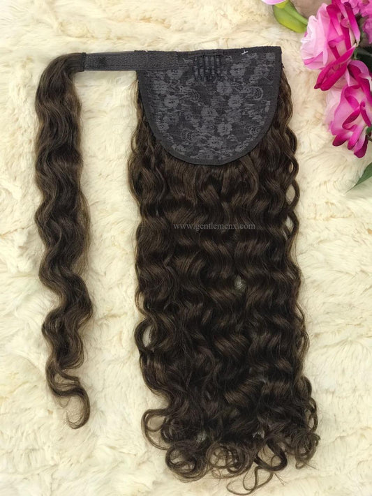 TGX Arnomeda 16''-18'' 100% Remy Human Hair Ponytail Extensions 110g 2# Dark Brown Water Wave