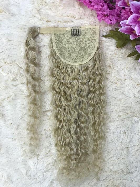 TGX Arnomeda 16''-18'' 100% Remy Human Hair Ponytail Extensions 110g 613# Blond Water Wave