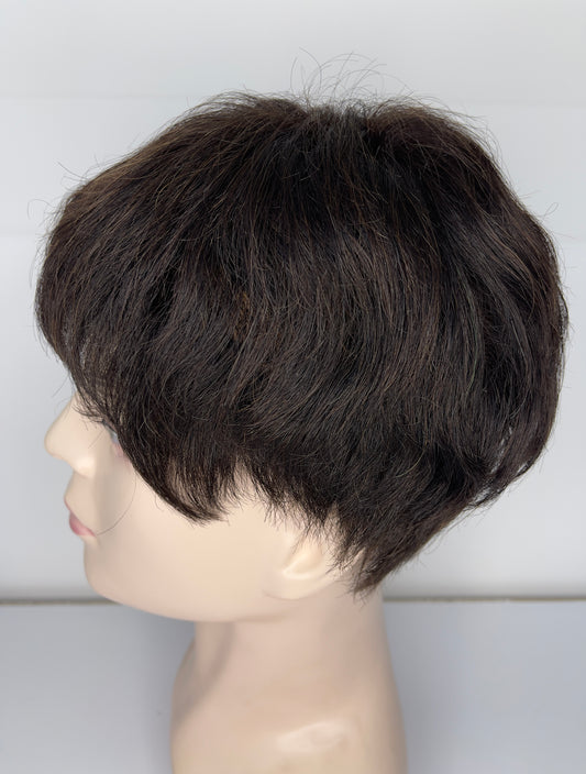 Men's Wig 100% Human Natural Black Short Hair Full Lace Wig