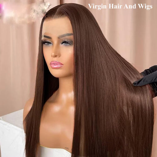 100% Human Hair Front Lace Wigs 13X4 Chocolate Brown 2#"