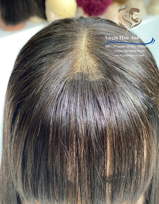 2X4 Lace Fringe Wig For Women 100% Human Hair Wigs With Bang straight 22'' Natural 1B
